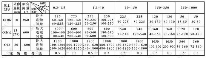 備注:1.測量冷水的流量范圍,連續運行時(shí)大流量取0.3-1.5mPa.s欄中最大流量的50%;最大流量取欄中最大流量的70%;