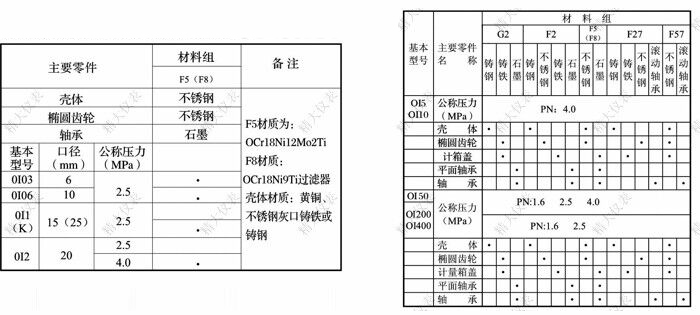 小型流量計主要材料及公稱(chēng)壓力 標準型流量計主要構件材料及公稱(chēng)壓力