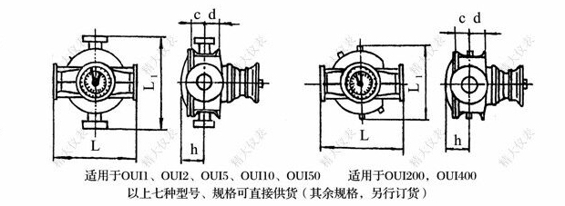 進(jìn)行加熱,使介質(zhì)融化并保溫。但由于安裝橢圓齒輪流量計處不允許直接通以蒸汽(防止損壞流量計),為此我公司設計了OUI系列產(chǎn)品,即在OI系列流量計殼體外增加保溫夾套,可用熱水、熱油或低于200℃的蒸汽通入保溫夾套,使流量計(或過(guò)濾器)內已凝固的介質(zhì)融化,并保持一定溫度,從而保證流量計能正常運行。橢圓齒輪流量計前安裝的過(guò)了過(guò)濾器可采用保溫夾套的形式,用戶(hù)需要可特殊訂貨。保溫夾套公稱(chēng)壓力為0.5MPa。