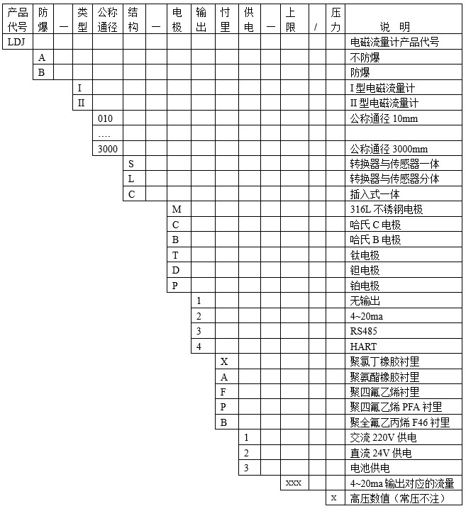 II型電磁流量計口徑DN(mm): 10、15、20、25、32、40、50、65、80、