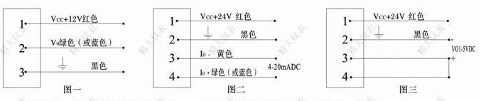 ELZ-Ⅱ型標準電流模擬量4-20mA輸出:工作電壓VCC+24V,最大工作電流0.2A,負載電阻最大500Ω(恒流),接線(xiàn)見(jiàn)圖二;或標準電壓模擬信號Vo1~5V輸出,接線(xiàn)見(jiàn)圖三)
