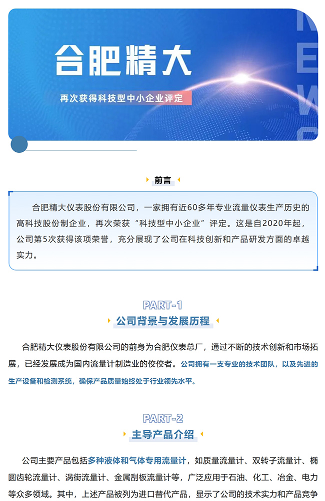合肥精大儀表股份有限公司再次獲得科技型中小企業(yè)評定,創(chuàng )新引領(lǐng)未來(lái)