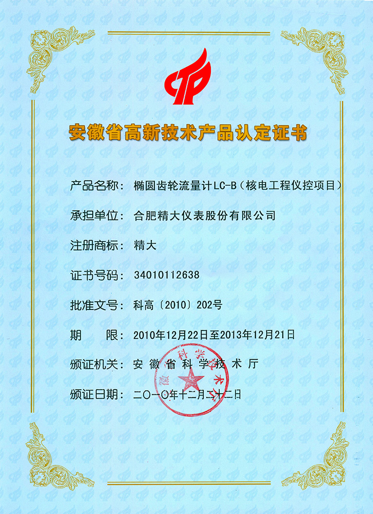 省高新技術(shù)產(chǎn)品認定證書(shū)(LC-B核電)