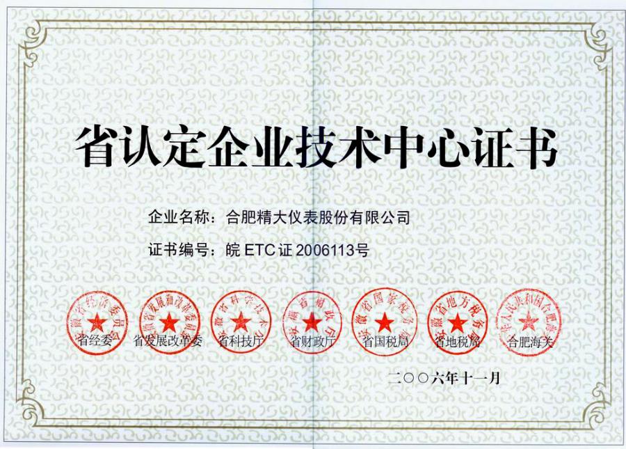 省認定企業(yè)技術(shù)中心證書(shū)